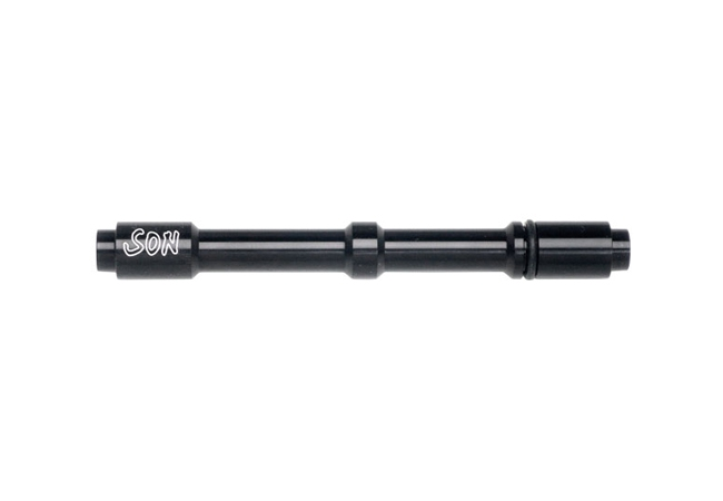 Diese Achse wird einfach in die 15 mm Steckachsennabe gesteckt. Aufgrund der einfachen Bauweisse auch kompatibel mit allen QR 12 Vorderradnaben.