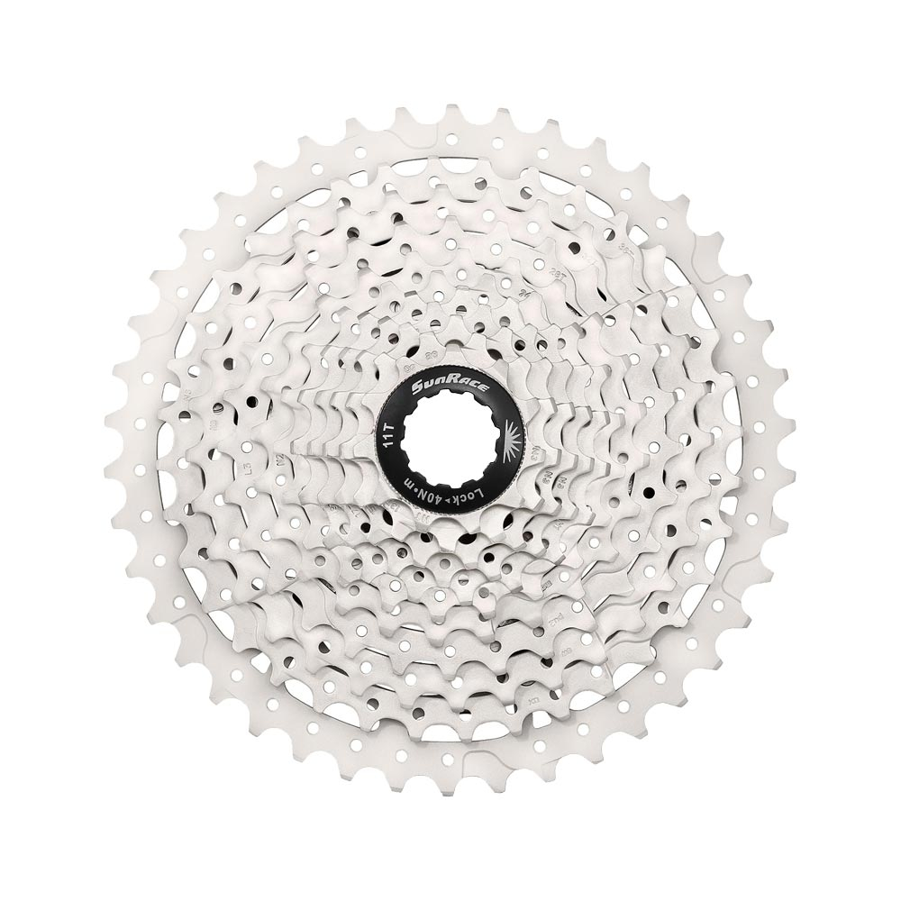 Die preiswerten SunRace 10 fach MTB Kassetten. Die SunRace Zahnkraenze bietet dank Fluid Drive Plus Technologie schnelle und zuverlaessige Schaltvorgaenge. Die 6 grossen Stahlritzel sind auf zwei Aluminium Spidern vernietet. Dieses spart Gewicht und erhoeht die seitliche Steifigkeit. Die drei kleinen Einzelritzel mit 11, 13 und 15 Zaehnen sind auch als Ersatzteil erhaeltlich Art Nr SPCS10 M.